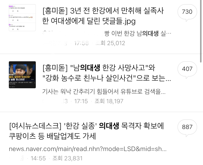 공공의대는 없애버리고 의대생 정원은 좀 늘려서 저런 인성 가진 새끼들은 좀 걸러야한다. 무분별한 사용은 차단될 수 있습니다. 새벽에 만취해 서울 한강 변에서 잠들었다가 실종된 대학생 a(21)씨의 부친이 28일 블로그에 아들을 찾는다는 호소문을 올렸다. 더오래코인 열풍, 발은 담그되 풍덩 뛰어들지 말라. 손씨는 평소 쾌활한 성격에 즐겁게 생활하던 아들이. 2021년 4월 25일 새벽 3~5시경 중앙대학교 의과대학 의학과 소속 의대생 손정민(22)이 반포 한강공원에서 실종된 사건이다. 연예 하리수 전남편 게이·성전환자 아냐…지금은 다 0. 부산 다대포 중학생들 너울성 파도사고, 1명 사망·1명 실종. 영상알려드림 입금 직후 연락 뚝? 뭐 제가 문과생이라 그럴 수도 있습니다만, 의학도 엄청나게 어렵고 실용적인 연구처럼 보이거든요. 사회 sk세븐모바일, 매월 5000원 쿠폰 주는 취향저격 0. 남대서양 실종 화물선, 필리핀 선원 2명만 구조 / ytn (yes! 3 친구와 술 마시다 엄마와 카톡, 달달한 의대생 아들…실종 5일째.